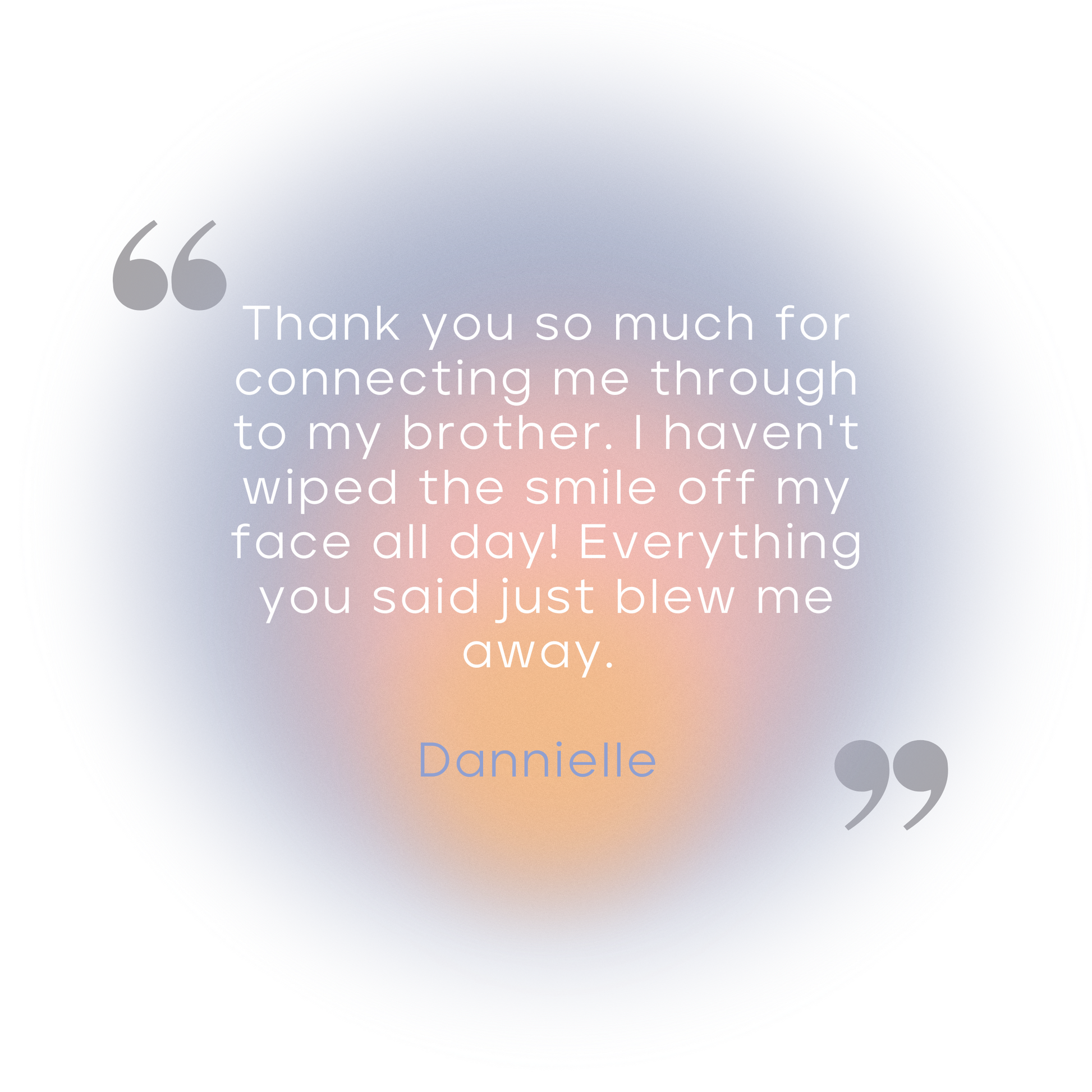 "I can't thank you enough for the gift of connecting with one of my loved ones- so special and accurate! I have goosebumps and happy tears. You truly have a gift. Thank you so much." Paige